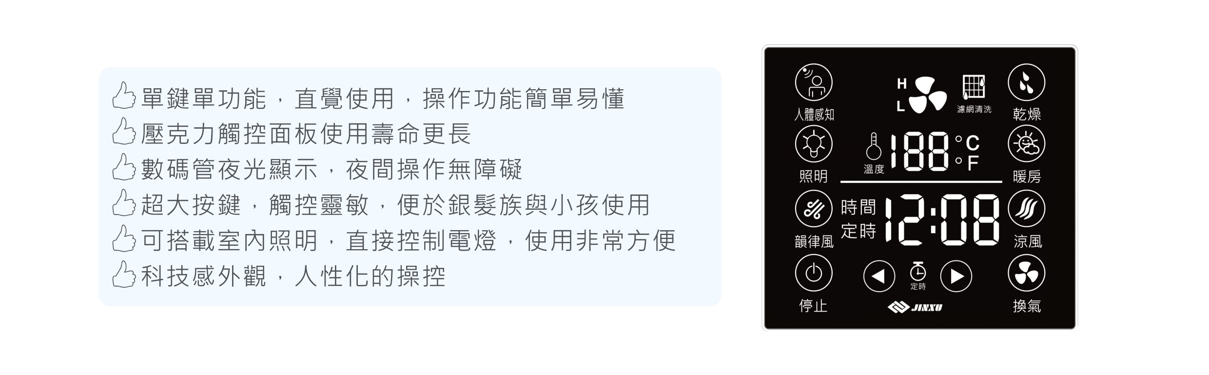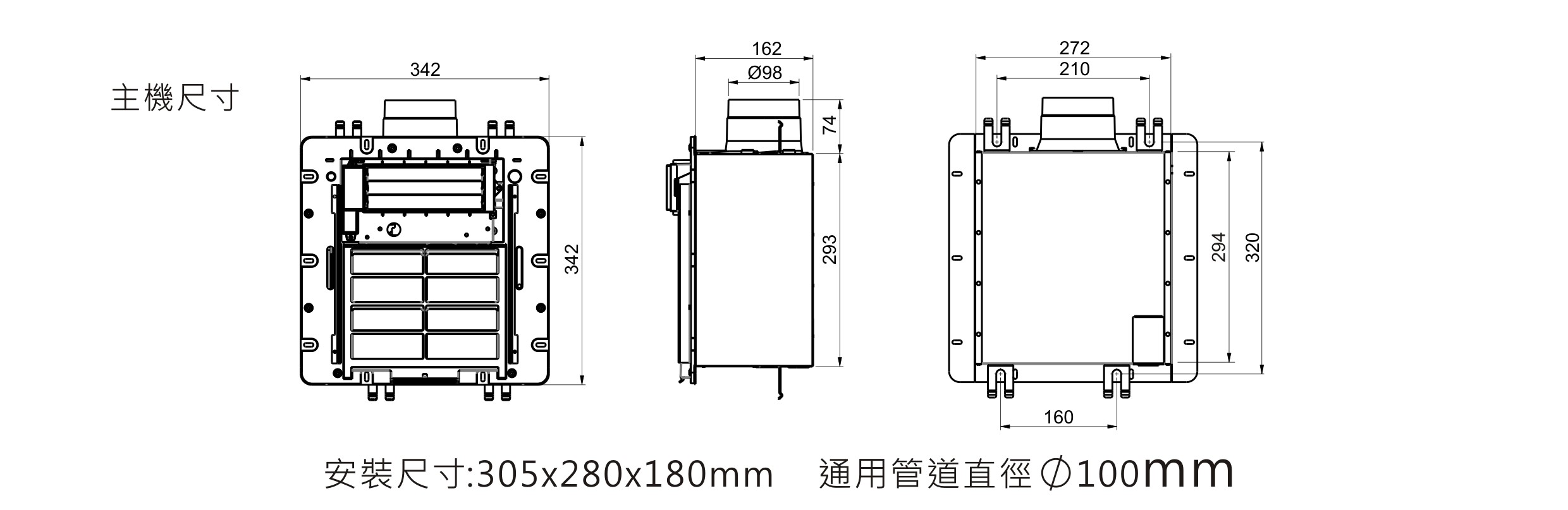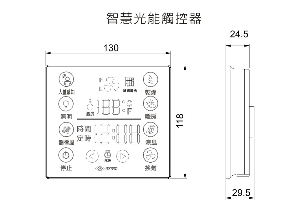 型號:DC302-LW (智慧光觸控款-線控) 額定電壓:220V 額定頻率:60Hz 消耗功率:2400W 管道直徑:ψ100mm 主電源線:ψ5.5mm 安裝尺寸:305×280×180mm 主機重量:7kg 商品產地:台灣